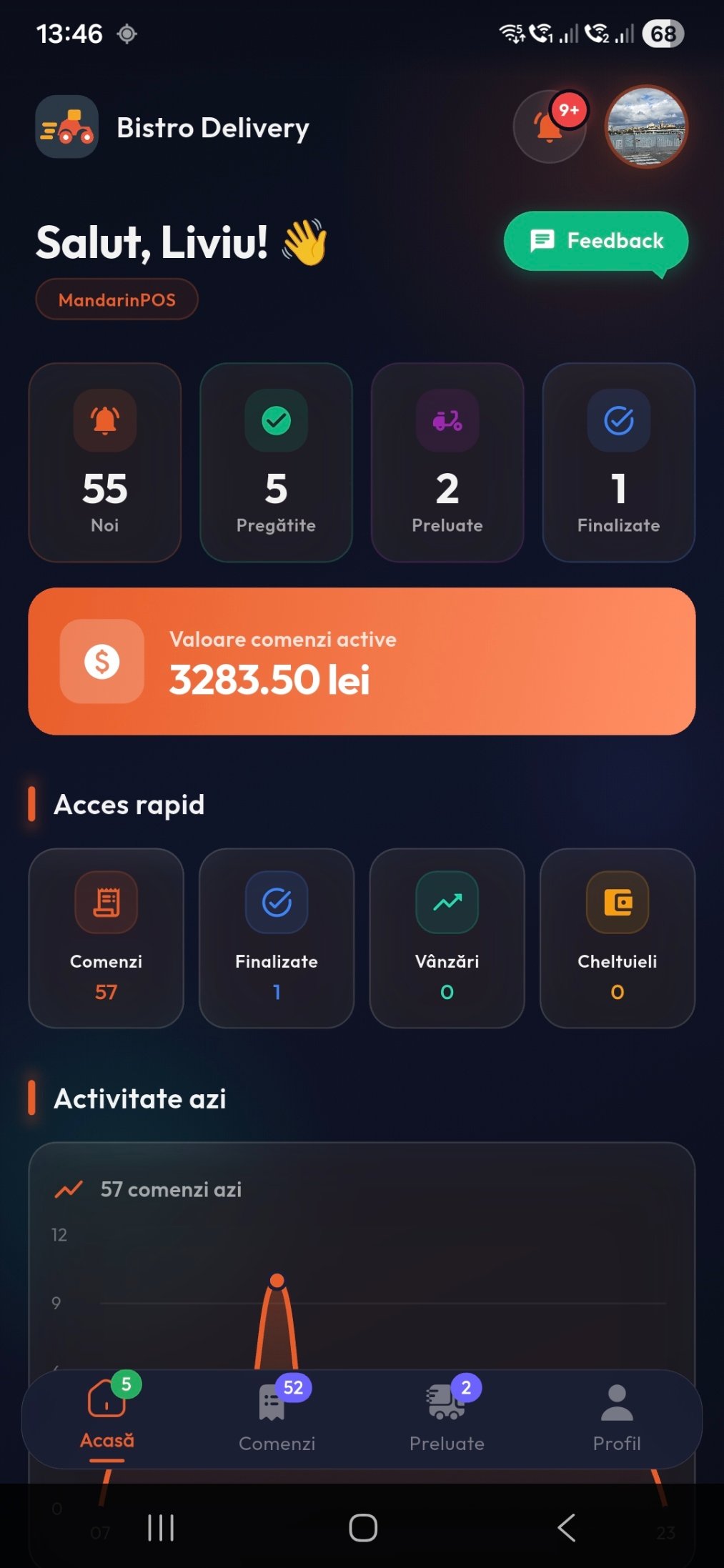 - ✅ Număr total comenzi livrate azi